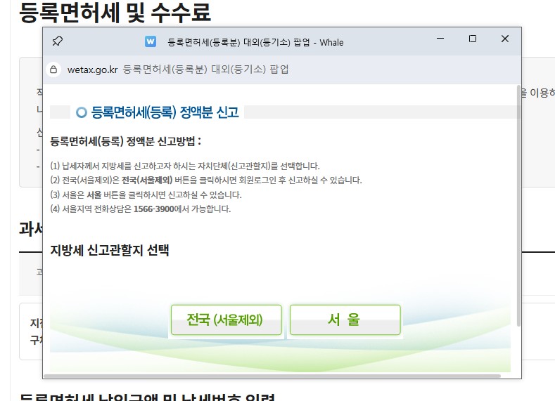 등록면허세 신고/납부로 들어가면 전국과 서울중 선택해서 들어 갑니다.