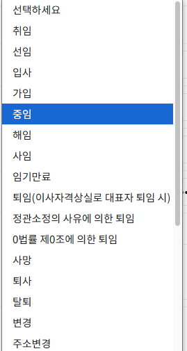 변경할 임원의 변경 선택