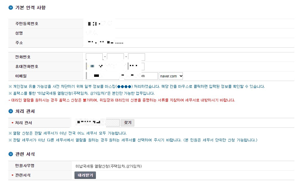 *미납 국세 등 열람 신청서 1부